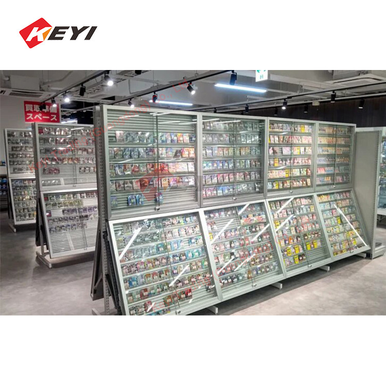 This retail display case is designed for graded trading and sports card displays, featuring adjustable height shelves and lockable doors. It is made of metal, acrylic and customizable materials, suitable for retail stores, supermarkets, shopping malls, and exhibitions, trade show, ect. It fits motst of style cards, such as PSA card, TCG card, graded cards with slab, standard Pokemon cards and so on. The knock-down construction saves shipping costs and ensures easy assembly with an instruction sheet. Custom sizes and colors are available, making it versatile for various indoor applications.